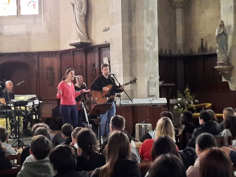 Les 233 élèves de 4ème se sont rendus à l'église St Gilles pour assister à un concert du groupe ALIVE. Ils ont chanté, dansé. Ceux qui le souhaitaient ont pu prier et exprimer leur foi. Un joli moment de joie et de partage.